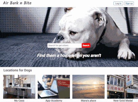 Air Bark n Bite is a clone of Airbnb but for pets. Now when you travel and book a rental you can also book a mini getaway for you pet dog, cat or other pets. This site was built on the React/Redux front-end and a Ruby on Rails backend.