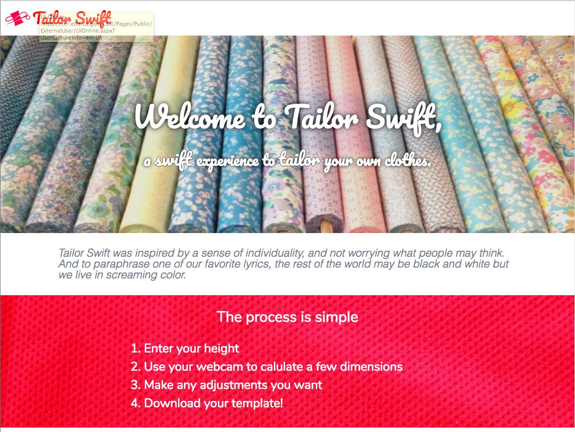 Tailor Swift uses computer vision to calculate user body proportions and returns a template for shirt tailoring. Tailor Swift is built on a React/Redux front-end, Node.js libraries for image processing and a Ruby on Rails backend.
